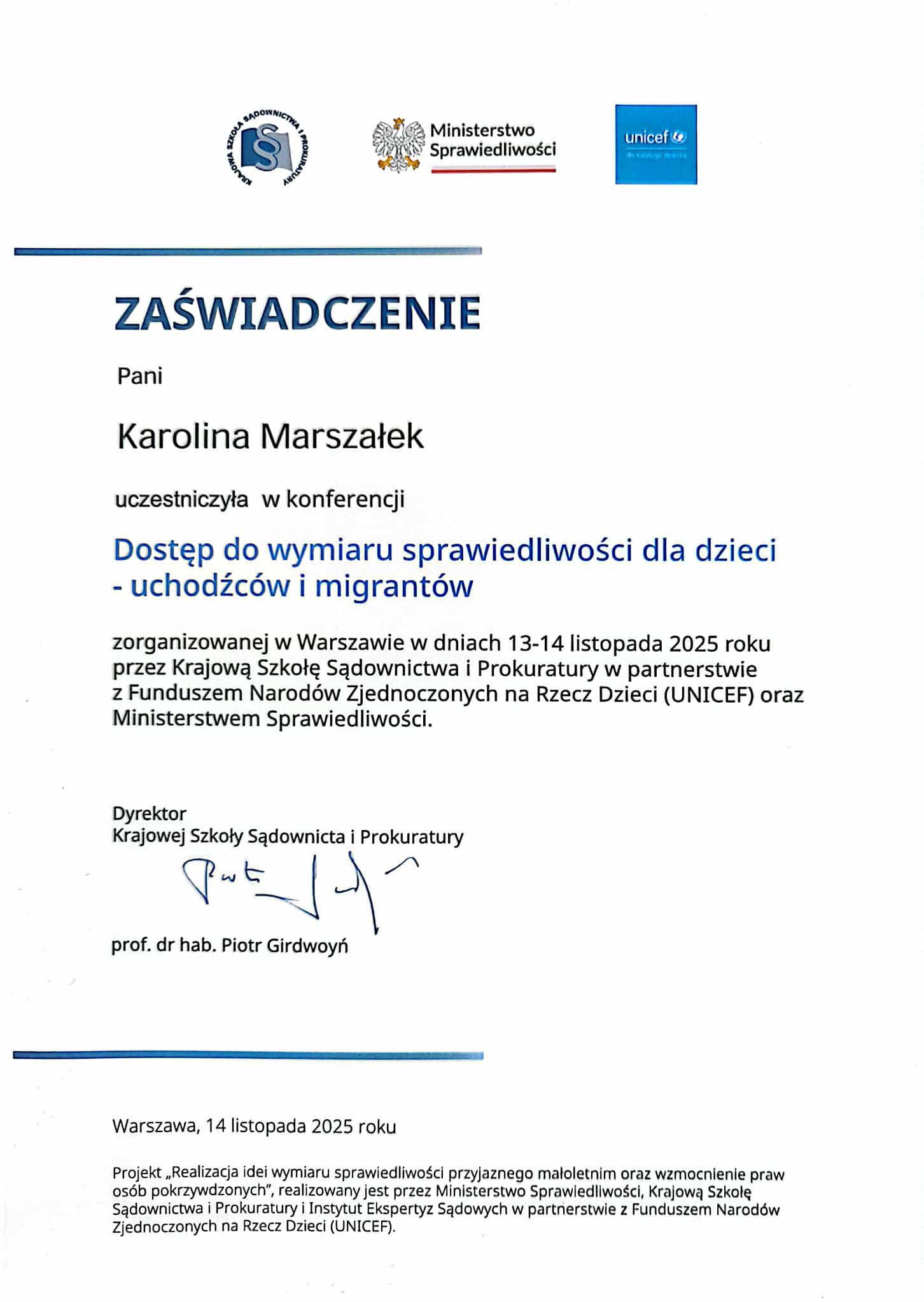 W dniach 13–14 listopada 2025 r. miałam zaszczyt uczestniczyć w jednej z najważniejszych konferencji w Polsce poświęconych ochronie praw dziecka – „Dostęp do wymiaru sprawiedliwości dla dzieci–uchodźców i migrantów”.